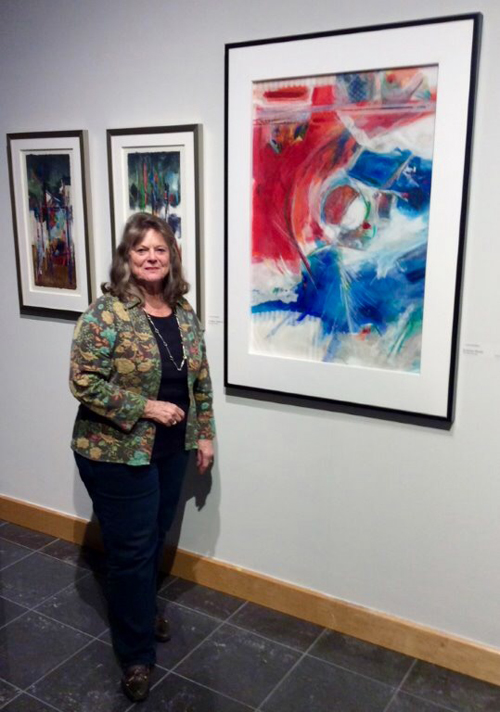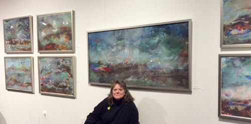 Work in the exhibit includes walnut sculptures "Shadows Suspended", "Mythical Spirit" and "Midnight Sun" by John and a number of mixed and laminated carved wood pieces evoking natural themes. Luray's large mixed media collages include "Into the Deep", "Sky Window", "Between Earth and Sky" and "Cosmic Mysteries" transporting viewers into a larger world.